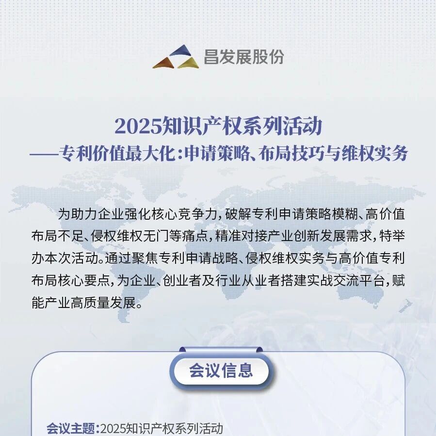 2025知识产权系列活动——专利价值最大化:申请策略、布局技巧与维权实务专题即将开启
