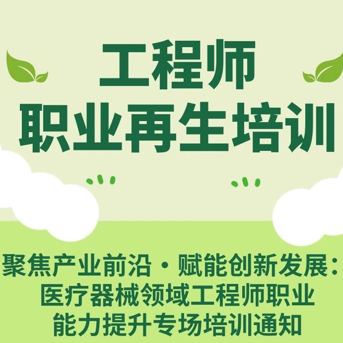 活动报名丨工程师职业再生培训-聚焦产业前沿·赋能创新发展:医疗器械领域工程师职业能力提升专场培训通知